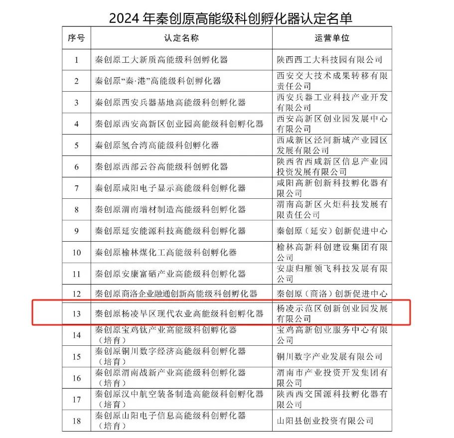 喜讯!杨凌这家企业被认定为秦创原高能级科创孵化器